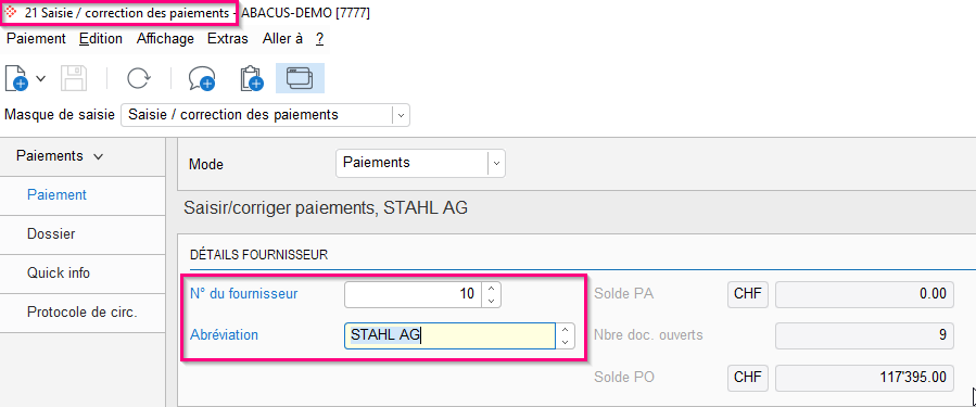 Dans le programme K21 - Saisir les paiements - Vous pouvez sélectionner le fournisseur concerné: