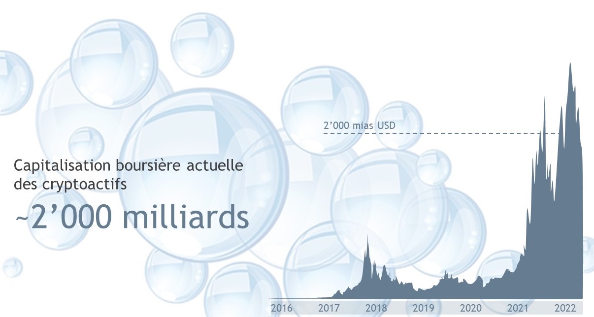 La question se pose depuis l’apparition du phénomène du bitcoin. La capitalisation boursière des cryptoactifs montre que la barre des USD 2’000 milliards a déjà été franchie en 2021.